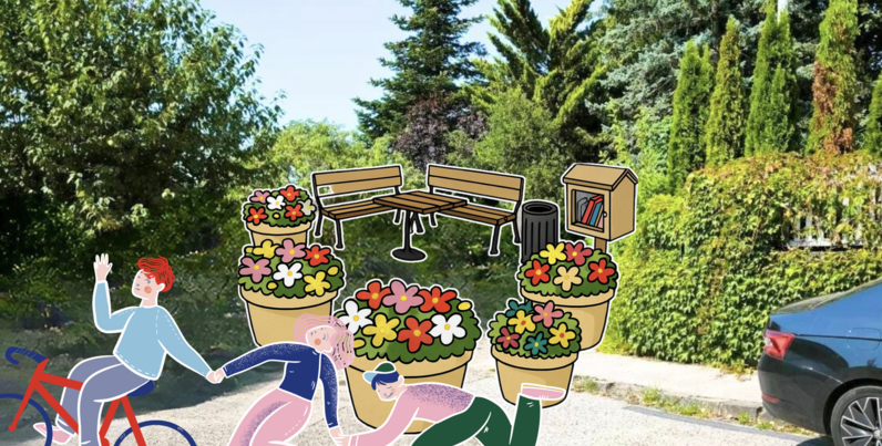 Roh Bezručovej a Gajovej ulice je obrovskou príležitosťou a vďaka Modrému kostolu aj jedným z najnavštevovanejších miest v Bratislave. Denne tadiaľ prejdú stovky pacientov z kliniky, detí z Gamče, turistov, ale aj miestni rodičia a obyvatelia. Skutočné miesto pre všetkých. Chceli by sme na ňom osadiť parklet určený na sedenie.