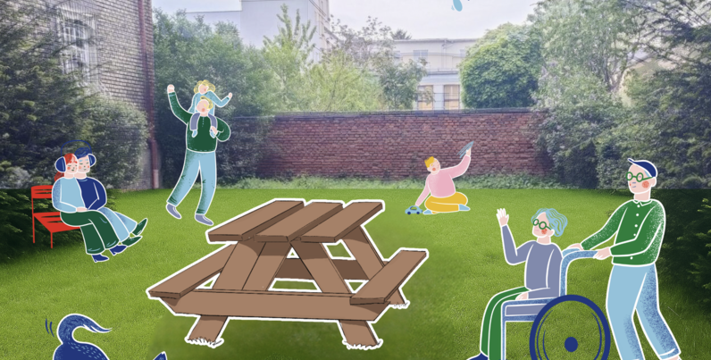 Cieľom návrhu je vytvorenie pokojného, oddychového verejného priestoru s množstvom zelene v kontraste s rušnými, hlučnými okolitými ulicami s hustou dopravou. Návrh pracuje s potenciálom veľkorysej plochy vnútrobloku, ktorá umožňuje vytvoriť možnosti využívania tohto momentálne nevyužitého verejného priestoru pre obyvateľov a obyvateľky všetkých vekových a rôznych záujmových skupín.