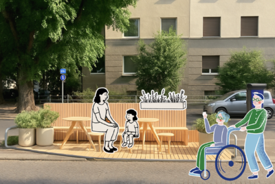 Roh Bezručovej a Gajovej ulice je obrovskou príležitosťou a vďaka Modrému kostolu aj jedným z najnavštevovanejších miest v Bratislave. Denne tadiaľ prejdú stovky pacientov z kliniky, detí z Gamče, turistov, ale aj miestni rodičia a obyvatelia. Skutočné miesto pre všetkých. Chceli by sme na ňom osadiť parklet určený na sedenie.